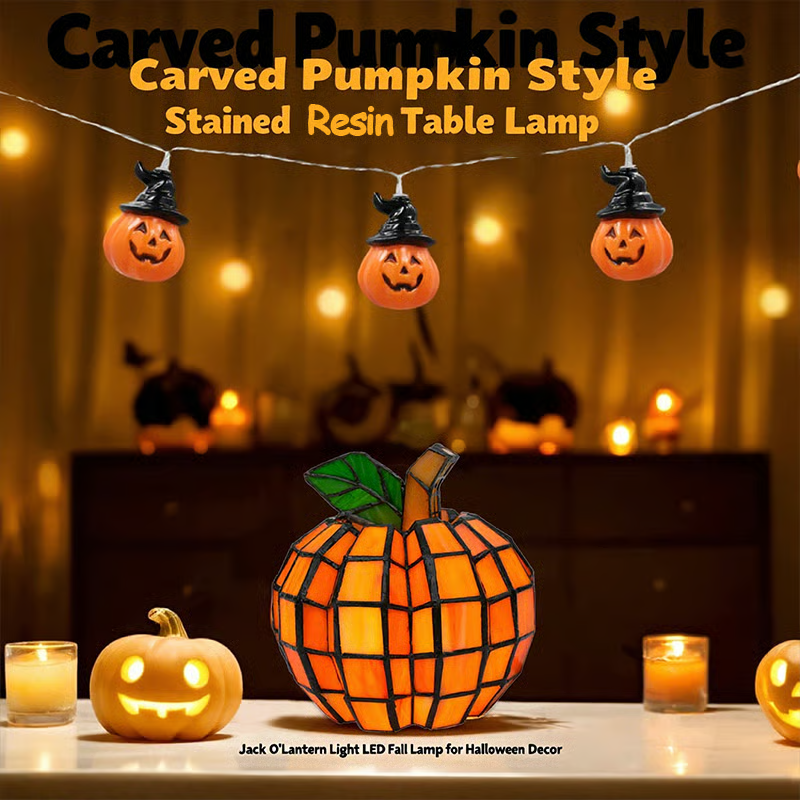 🔥Last Day 49% OFF - Carved Pumpkin Style Stained Resin Table Lamp